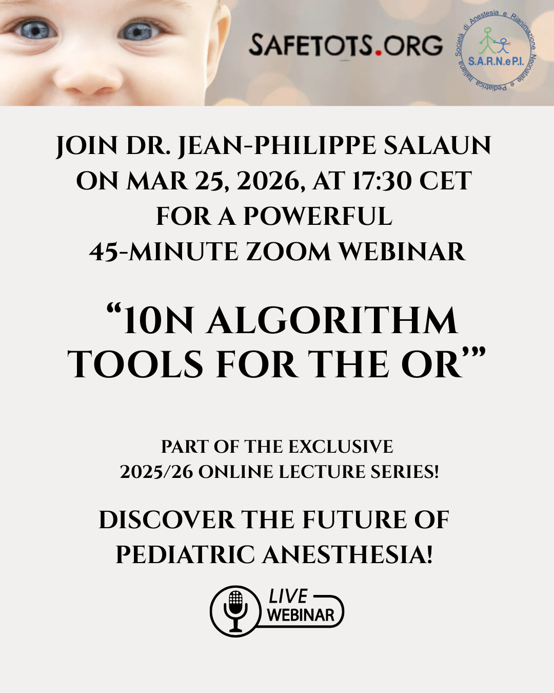 The Safetots.org initiative addresses the safe conduct of pediatric anesthesia. We promote the rights of the child for high quality care in the right environment
